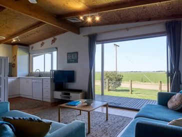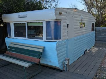 Tucked away at the ‘Paris end’ of Venus Bay’s First Estate, Eddie's Caravan @ VB offers a peace and stillness that is hard to find in the busy modern world. Sweeping views across the paddocks are framed by ancient pines and ocean dunes as cares dissolve with the casual tumble of the windmills on the horizon and the distant rumble of the surf.